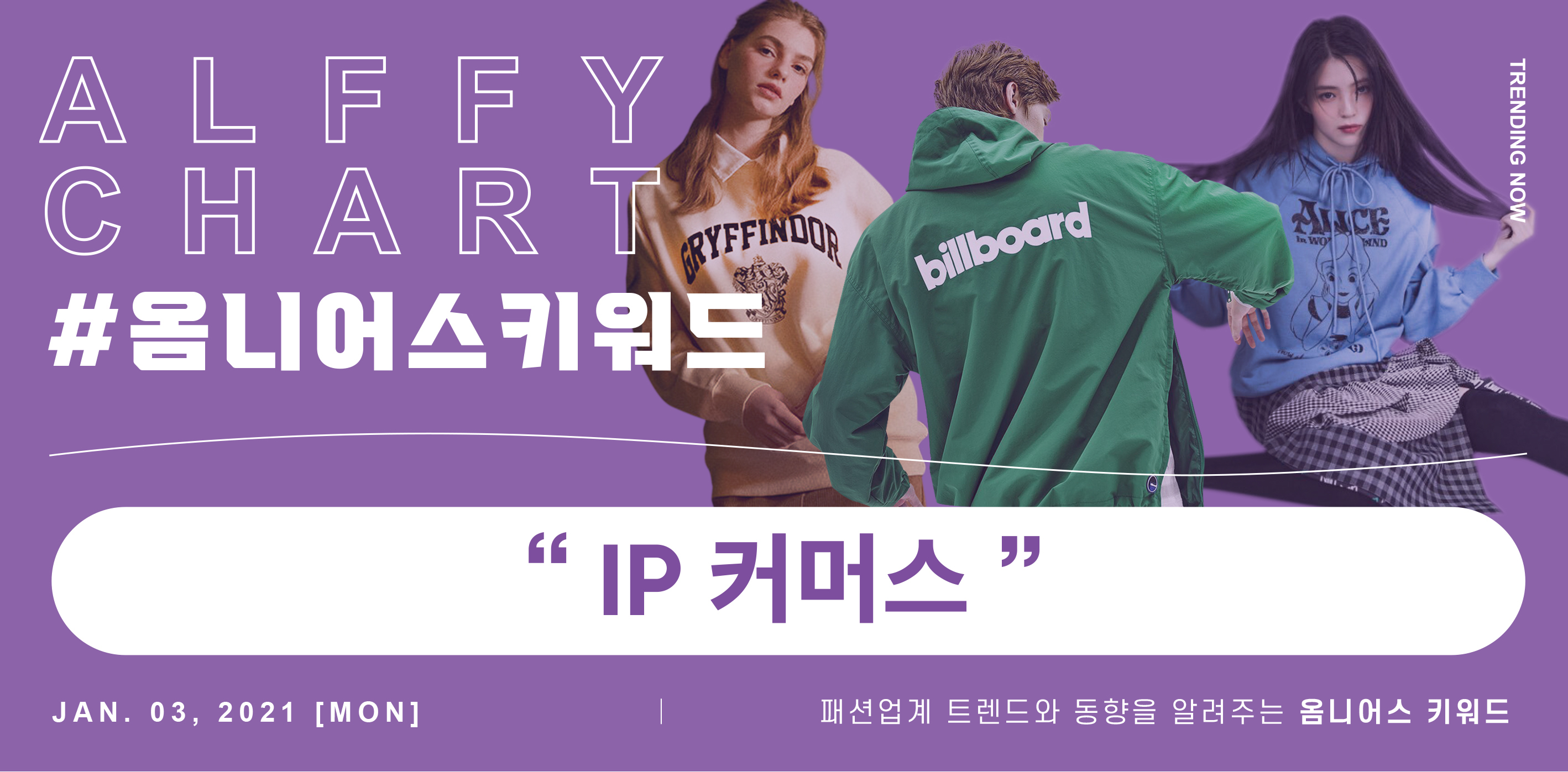 이미지: 럭키슈에뜨 x 이상한 나라의 앨리스 컬렉션 캐릭터 IP 커머스의 예시 두터운 팬덤을 공략한 캐릭터 IP 커머스 제품도 높은 인기를 자랑합니다. 2018년 스파오는 판타지 소설 해리 포터와 협업 컬렉션을 선보였는데요. 해당 제품은 오프라인 매장 오픈과 동시에 두 시간 만에 전국 완판을 기록했습니다. 2019년에는 해리 포터 겨울 라인과 ‘도비’ 에디션을 출시해 해리포터 IP의 여세를 이어갔는데요. 지난달에 론칭한 ‘해리 포터 NEW 기숙사 컬렉션’까지, 해리포터 팬들을 꾸준히 공략하고 있습니다. 코오롱FnC의 여성 캐주얼 브랜드 럭키슈에뜨는 디즈니의 ‘이상한 나라의 앨리스’와 컬래버레이션한 컬렉션을 선보였습니다. 해당 컬렉션은 온라인에서 선공개된 후 8시간만에 4천만 원 이상의 매출을 달성했죠. 송지오의 캐주얼 라인 지제로 바이 송지오도 지난 6월 미국 애니메이션 캐릭터 곰돌이 푸와 협업한 ‘블랙 벌룬' 컬렉션을 출시, 4일 만에 완판되었습니다. 해외에서도 캐릭터 IP를 활용한 패션 컬렉션은 꾸준히 출시되고 있습니다. 컨버스와 포켓몬스터, 스트리트 브랜드 키스(Kith)와 스타워즈, 넷플릭스 오리지널 시리즈 ‘기묘한 이야기'와 챔피언의 협업 컬렉션이 출시됐죠. 해외 패션 브랜드는 애니메이션, 드라마, 영화 등 다양한 IP 콘텐츠와 손잡은 의류 라인을 선보이고 있습니다.